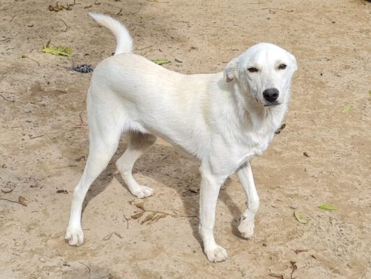 Adelle is een lief en zachtaardig meisje. Ze is gek op mensen en komt graag naar je toe voor een knuffel. Adelle is een bescheiden meisje en geen haantje de voorste. Neemt niet weg dat ze heel graag wat aandacht wil. Met de andere honden gaat het ook heel goed, ze zal nooit zomaar ruzie maken. Het lopen aan de riem vond ze nog spannend en heeft nog wat training nodig. Natuurlijk zal ze nog wat dingen moeten leren en zijn we op zoek naar baasjes die haar op een rustig tempo willen laten wennen aan een fijn nieuw leven.
