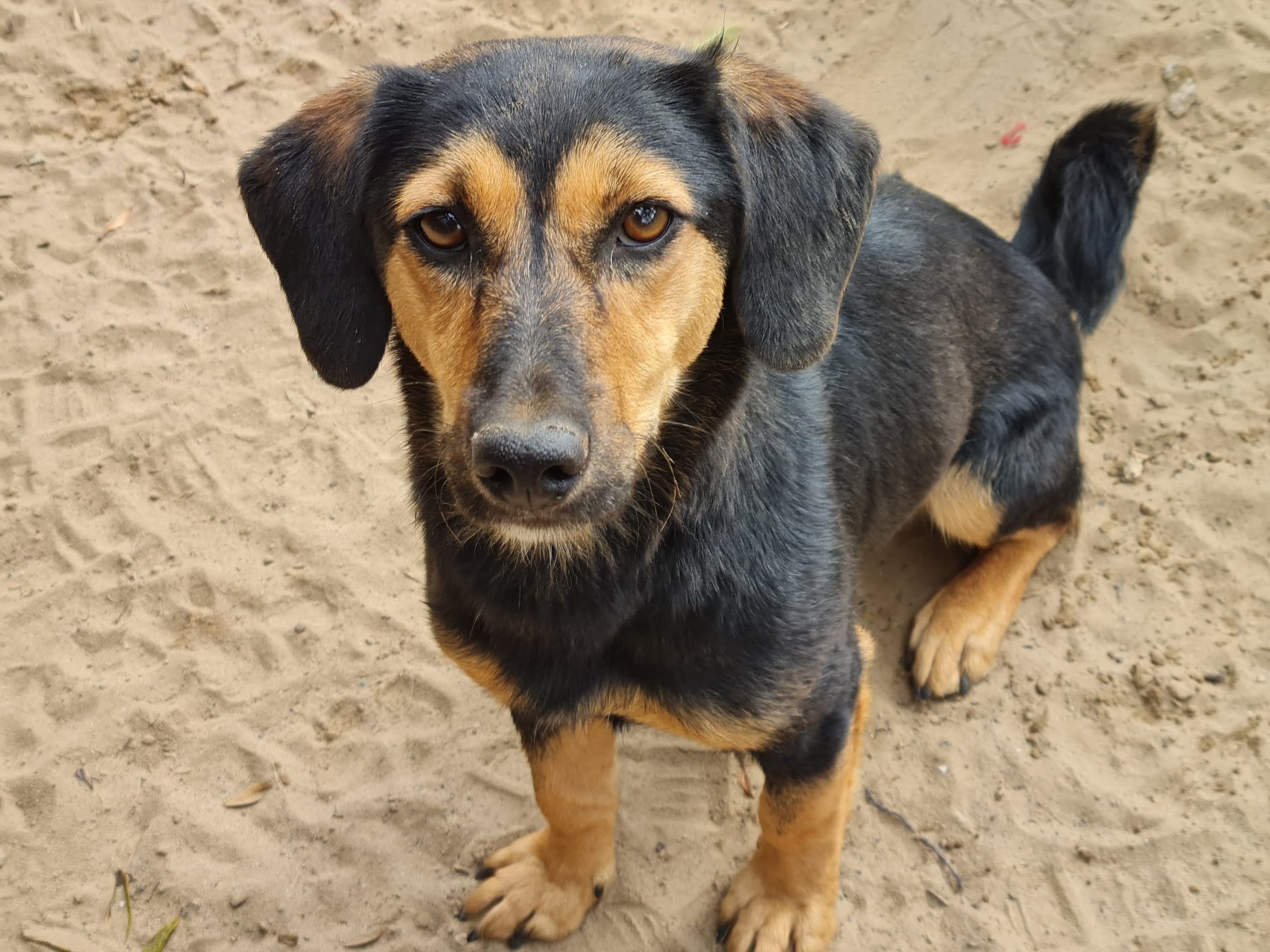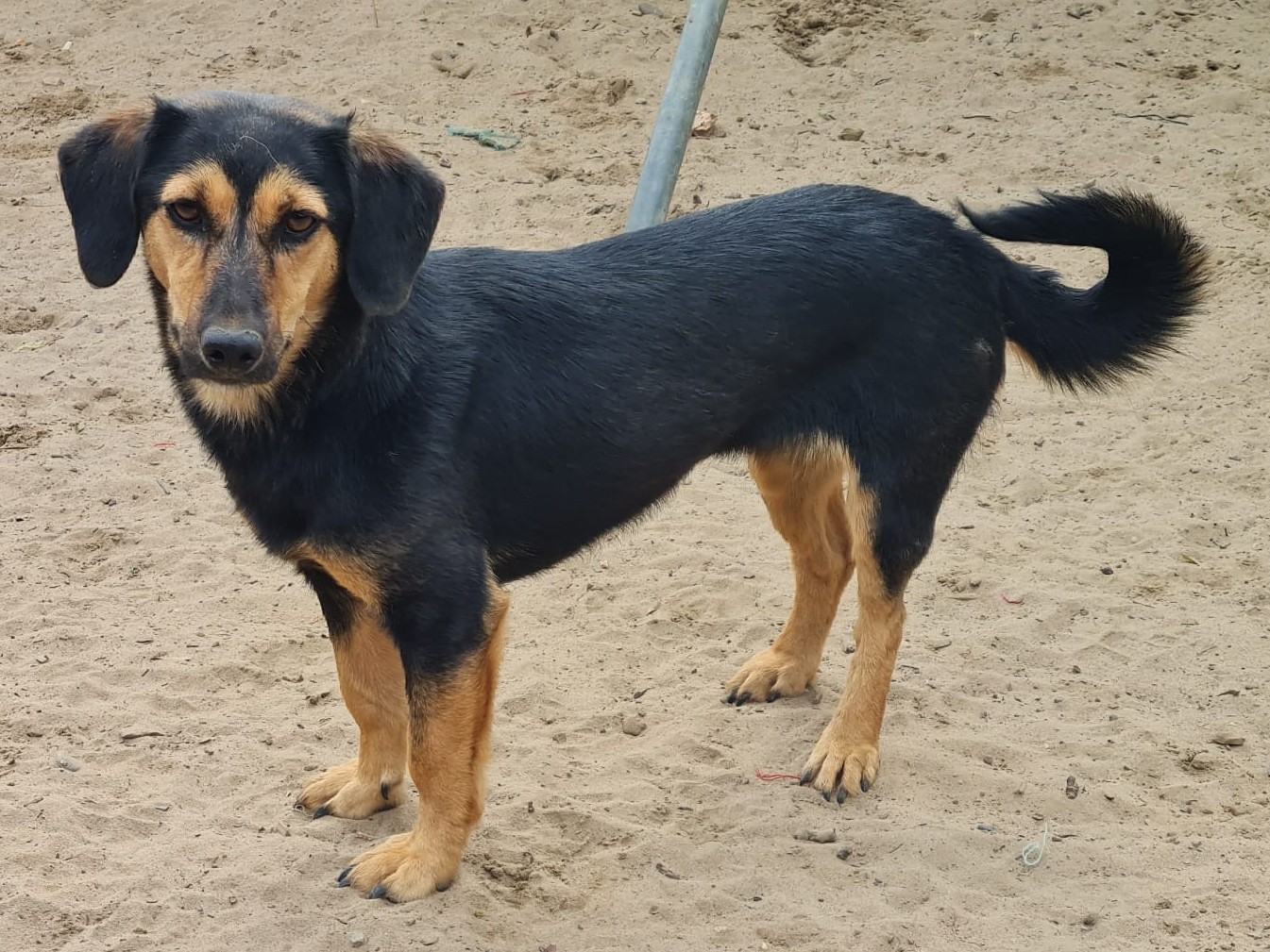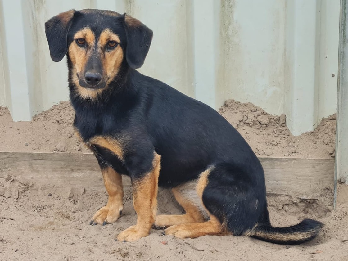 Dit lieve meisje heet Amara. Amara is een teefje van ongeveer 35 cm schofthoogte en weegt ongeveer 10 kilo. Haar geschatte geboortedatum is februari 2023.