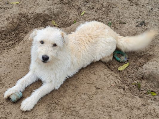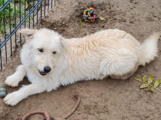 Aron is een heel grappig en vrolijk hondje. Hij is speels, blij en gek op aandacht. Zo kan hij heel goed met de andere honden overweg en speelt hij graag met ze. Ook mensen vindt hij heel leuk en is hij gek op knuffels en aandacht. Spelen met speeltjes is ook echt favoriet! Echt een speels, leuk en vrolijk hondje. Hij heeft de eerste stapjes aan de riem gezet en dat deed hij al heel goed! Natuurlijk zal hij nog wat dingen moeten leren en nieuwe situaties kan hij wat spannend vinden, dus zijn we op zoek naar baasjes die hem op een rustig tempo willen laten wennen aan een fijn nieuw leven.