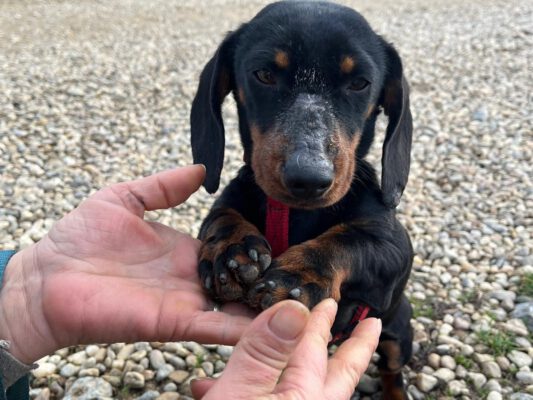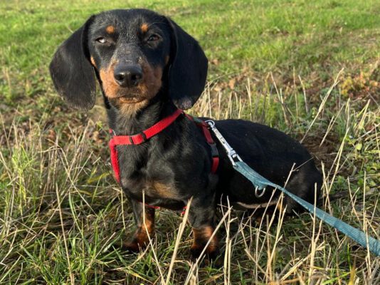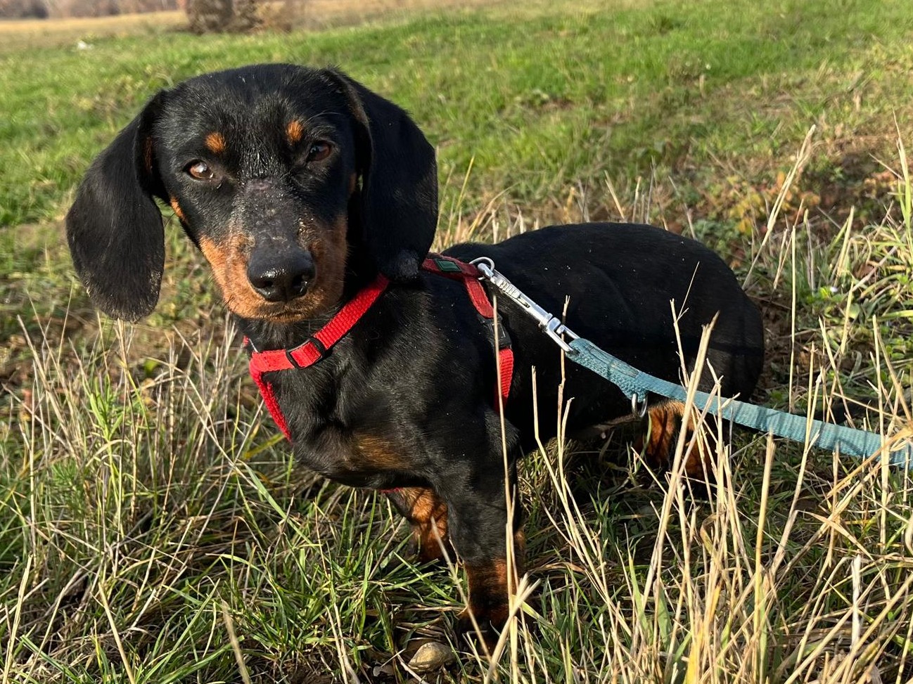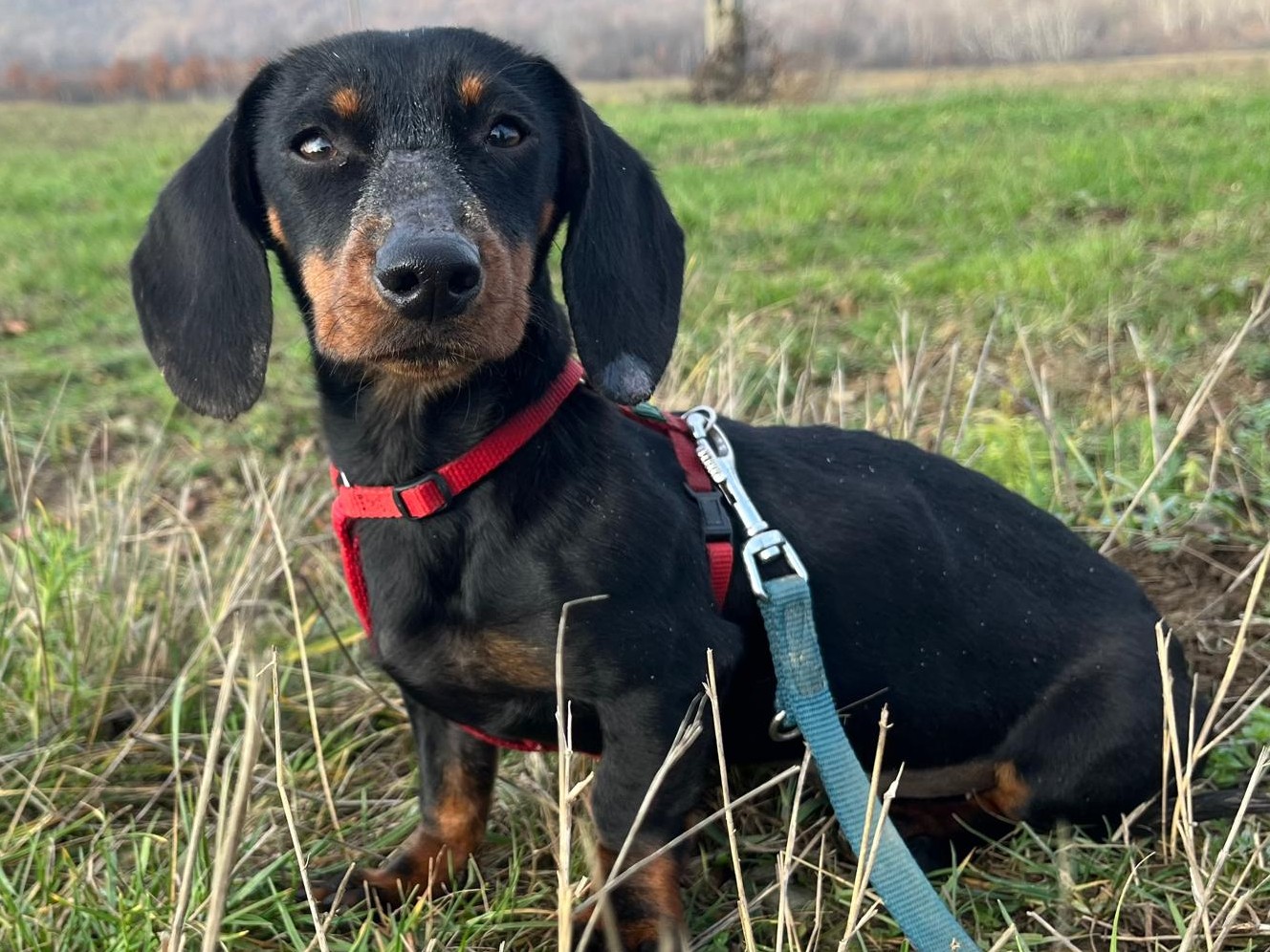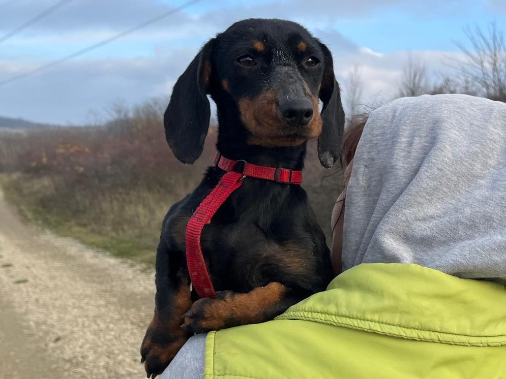 Dit is Astrid. Astrid is een klein teefje. Ze lijkt op een teckel, maar of ze ook 100% teckel is, is moeilijk te garanderen, gezien ze op straat is gevonden en we haar achtergrond niet weten. Haar geschatte geboortedatum is april 2024.
