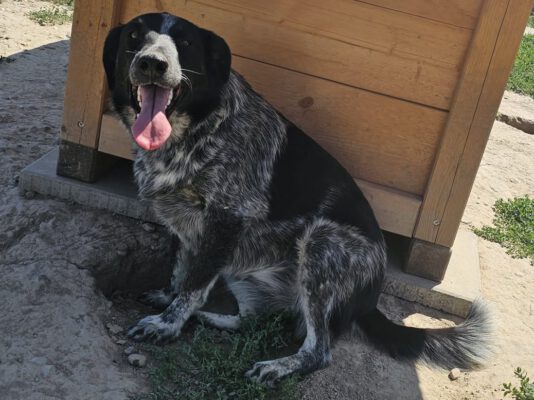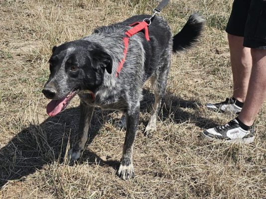 Dit is Caithe. Caithe is een teefje. Haar geschatte geboortedatum is augustus 2023. Ze is ongeveer 60cm schofthoogte en weegt zo een 40 kilo, een prachtige grote dame dus.