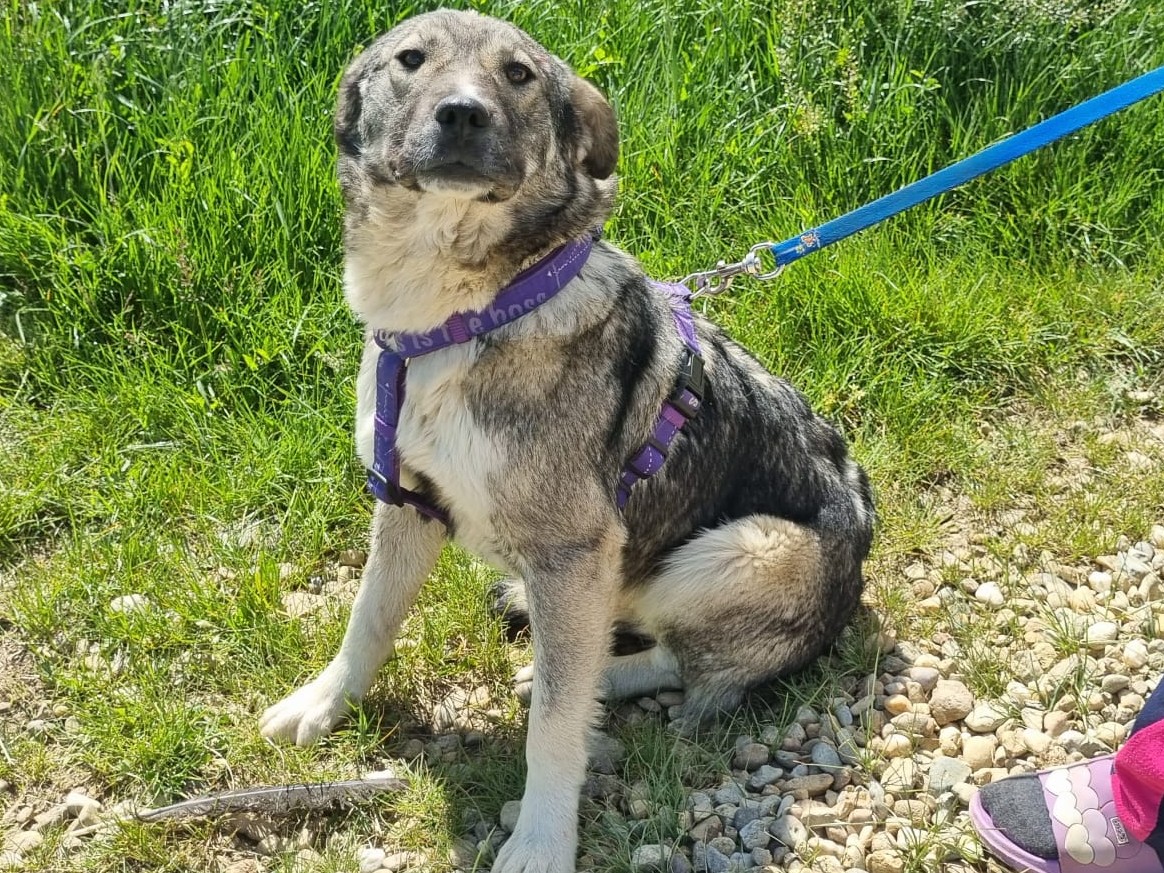 De mooie grijze Celine is een zonnestraaltje. Ze heeft een aangenaam en evenwichtig karakter. Ze is aanhankelijk, loyaal en flexibel. Ze volgt iedereen overal en verlangt naar een gezin dat van haar houdt. De lieve Celine zal haar erg dankbaar zijn en haar gezin veel vreugde brengen. Ze kan goed overweg met de andere honden in het asiel en speelt graag met ze. Ze loopt goed mee aan de lijn en leert graag nieuwe dingen.