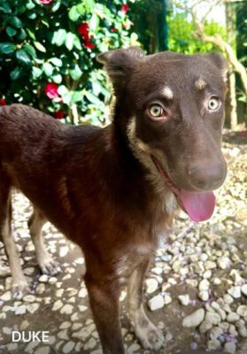 Duke is gevonden op een veld in Turkije samen met zijn broertjes en zusjes. Gelukkig zijn ze allemaal opgenomen door Aysin die hem in een gastgezin heeft geplaatst in Turkije. We hopen een fijn plekje voor ze te vinden, zodat het gastgezin meer honden kan helpen die het nodig hebben.