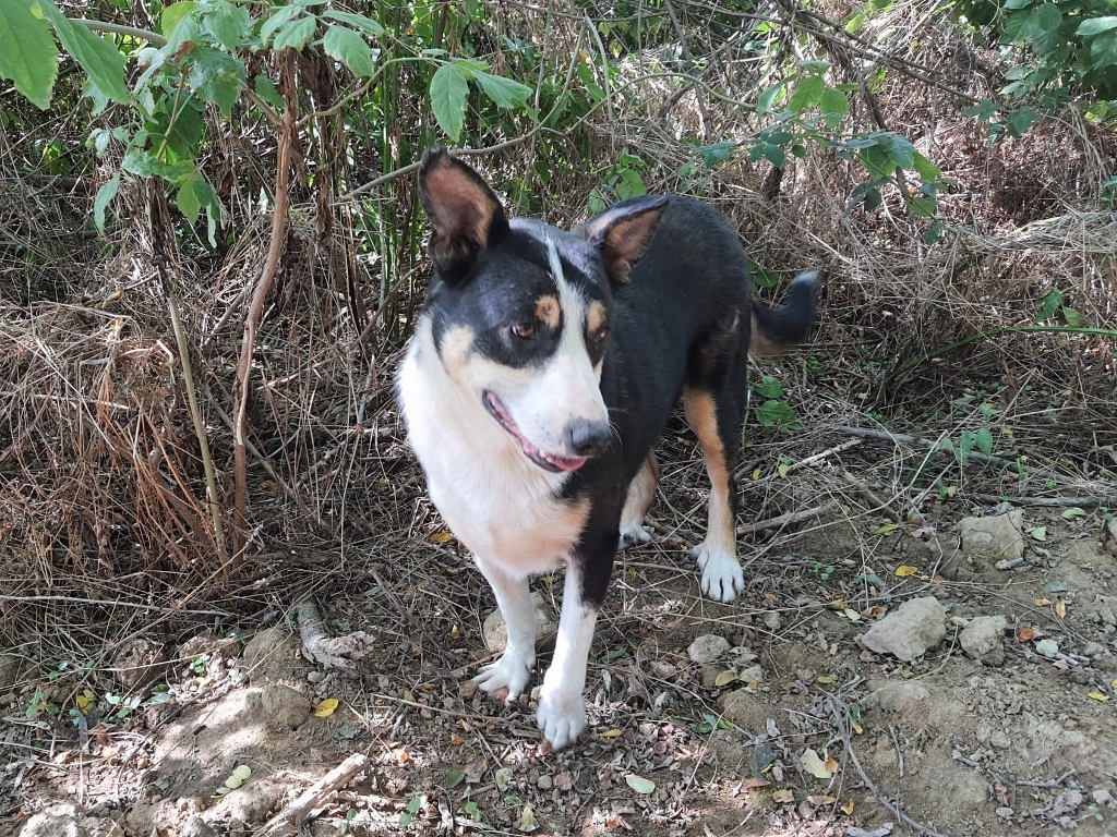 "September 2021, bezoek aan ons asiel in Roemenië. Daar zag ik je voor de eerste keer. Ik hoorde wat ritselen in de bosjes, en daar kwam jij uit tevoorschijn! Je lachte meteen naar me (ja echt hoor!) en mijn hart smolt meteen. Het asiel is in verschillende 'stations' ingedeeld, waar meerdere groepen honden los leven. Ik kwam jou tegen toen in net station 2 verliet, en naar station 3 liep.