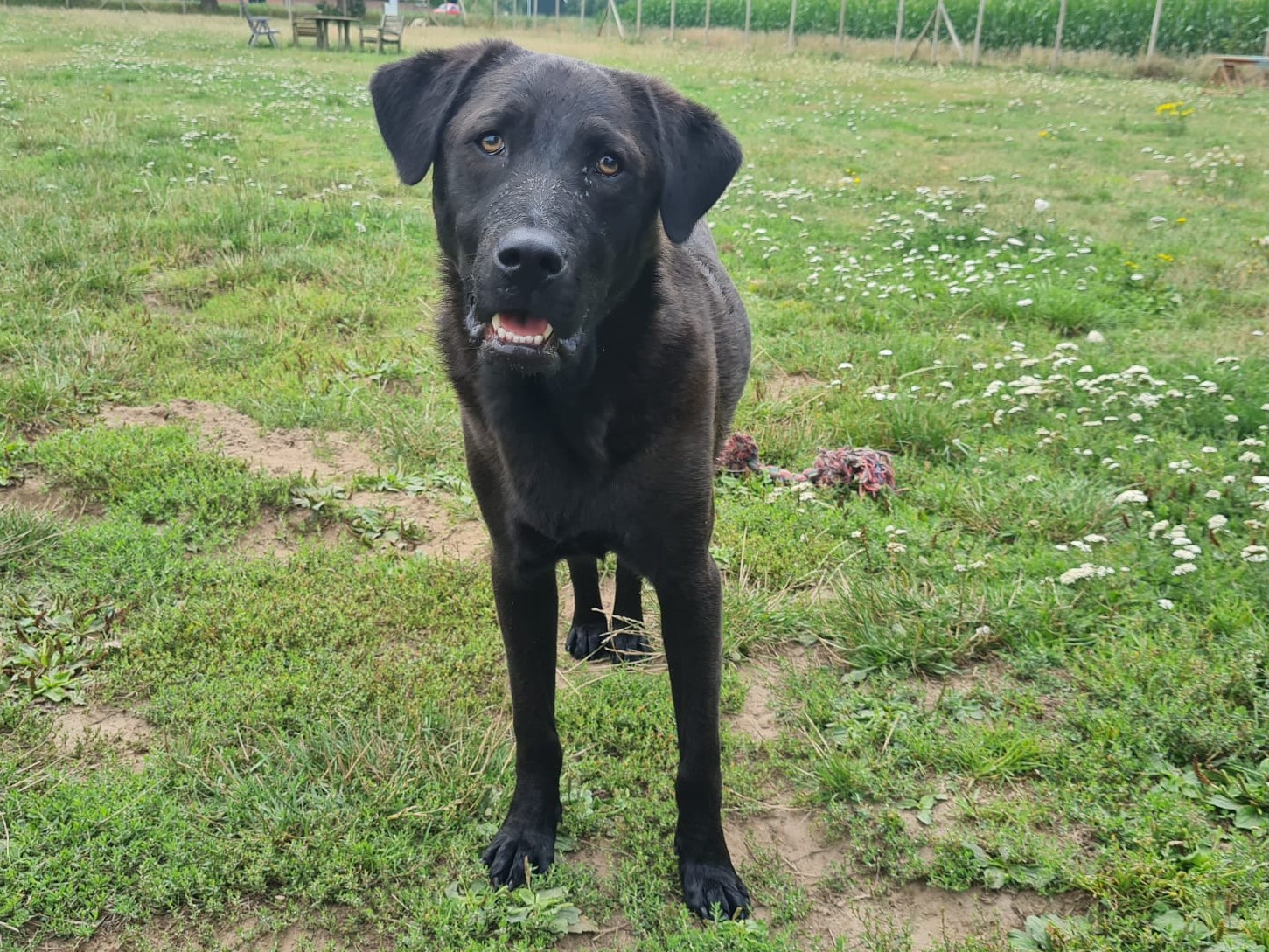 Hugo is een heerlijk hond. Hij is vrolijk en speels. Hij speelt echt met elke hond en vind ze ook allemaal lief. Hij geniet ook echt van lekker samen rennen en spelen. Zwemmen vindt hij ook leuk! Naar mensen toe is hij echt heel vriendelijk. Hij vindt iedereen lief, geniet enorm van aandacht en knuffels. Het is echt een knuffelbeer. Hij vind het ook heel erg leuk om te spelen met speeltjes en kan zichzelf goed vermaken. Hugo is een slimme knul en leert snel. Hij is het leven in huis gewend, zindelijk, loopt goed mee aan de riem, sloopt niets en kan even alleen thuis zijn.