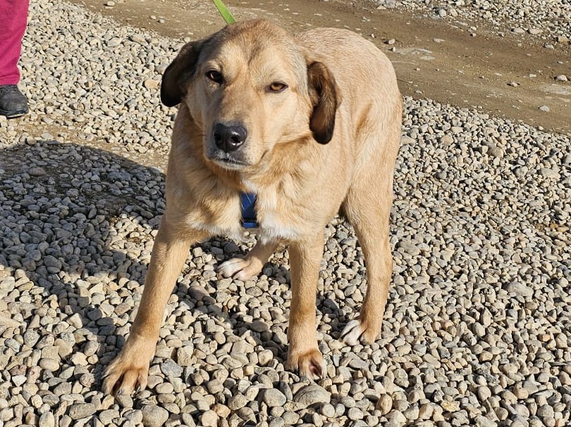 Deze mooie hond heet Jordan. Jordan is een reu met een schofthoogte van ongeveer 55 à 60 cm. Zijn geschatte geboortedatum is augustus 2022.