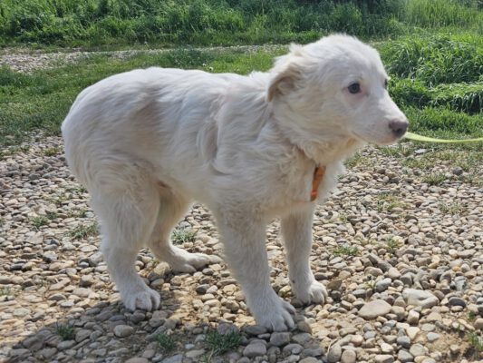 Hij is samen met zijn 2 broertjes achtergelaten bij de ingang van het asiel van Sos Dogs Roemenië, ze waren heel klein en bang. Ze zijn 2 dagen bezig geweest om hen te vangen, zo bang waren ze. Eenmaal in het asiel kregen ze de zorg die ze nodig hadden en zijn nu klaar om te reizen.