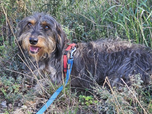 Mela is een ongelooflijk lief klein meisje. Ze heeft de bouw van een teckel. Ze loopt al heel goed mee aan de riem en trekt niet. Naar mensen toe is ze heel lief en geniet van aandacht en knuffels. Met de andere honden kan ze ook goed overweg. Ze heeft iets bijzonders, iets zachtaardigs. We hopen snel een fijn thuis te vinden voor dit lieve meisje.
