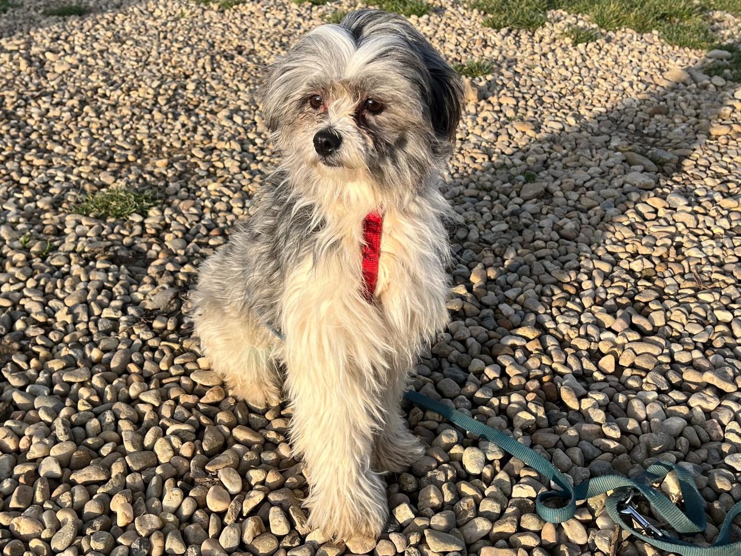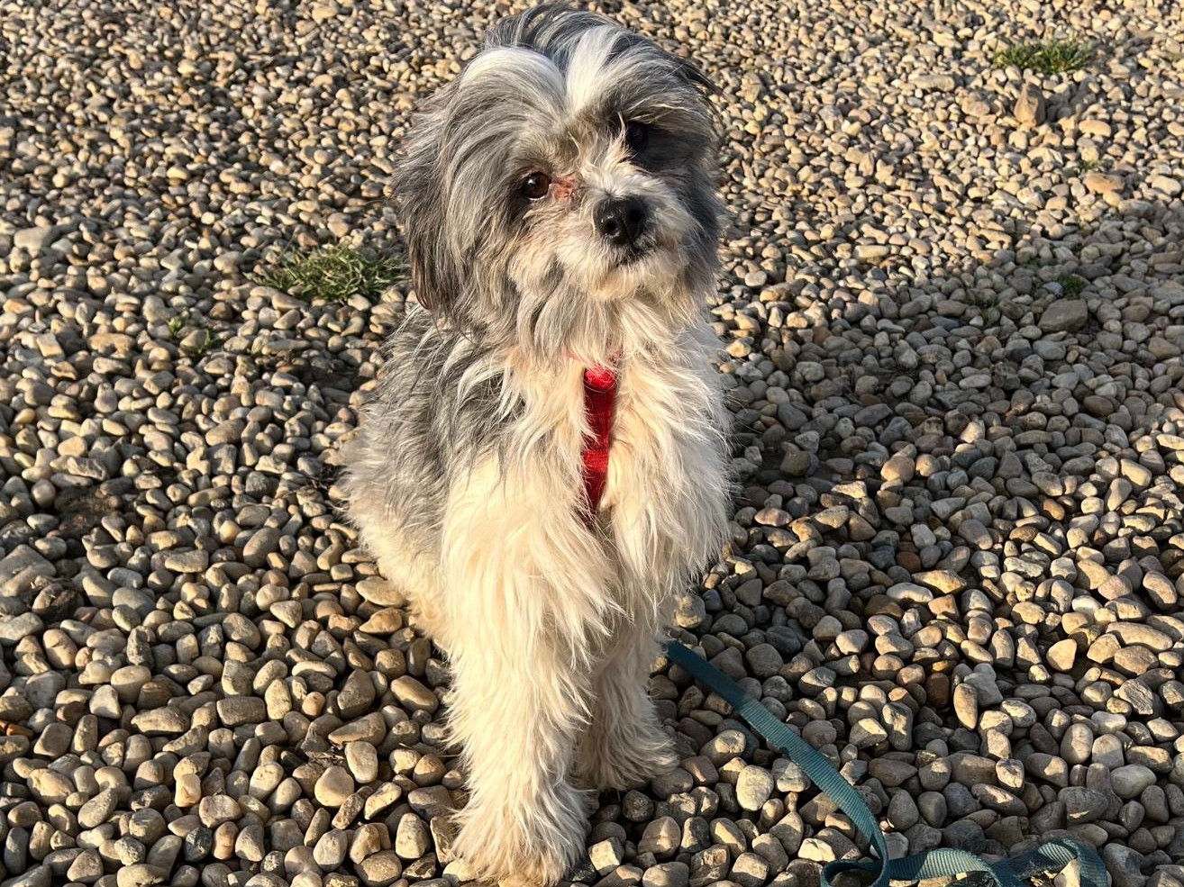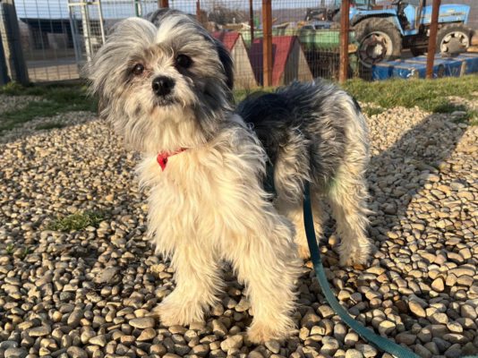 Dit is Neera. Neera is een teefje van 37 cm schofthoogte. Haar geschatte geboortedatum is juni 2018. Ze heeft een onderbeet en omdat haar tanden niet meer de beste zijn, is het moeilijk te zeggen hoe oud ze precies is, maar we denken dus ongeveer 7 jaar oud.