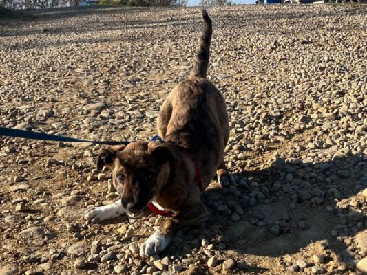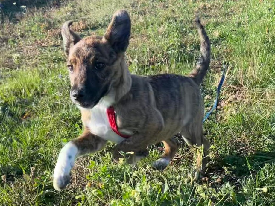 Polly is een lief en heel vrolijk meisje. Ondanks dat haar start waarschijnlijk niet de beste was, lijkt ze daar niets aan overgehouden te hebben. Ze is vrolijk, enthousiast en gaat graag op onderzoek uit. Ze kan goed met andere honden en geniet van de aandacht. Natuurlijk zal ze nog wat dingen moeten leren, maar ze is nog jong en leert snel. Polly zoekt een fijn thuis waar ze rustig de nieuwe wereld mag gaan ontdekken.